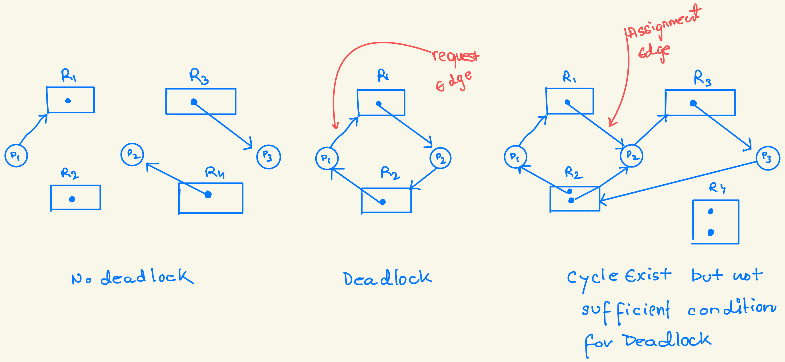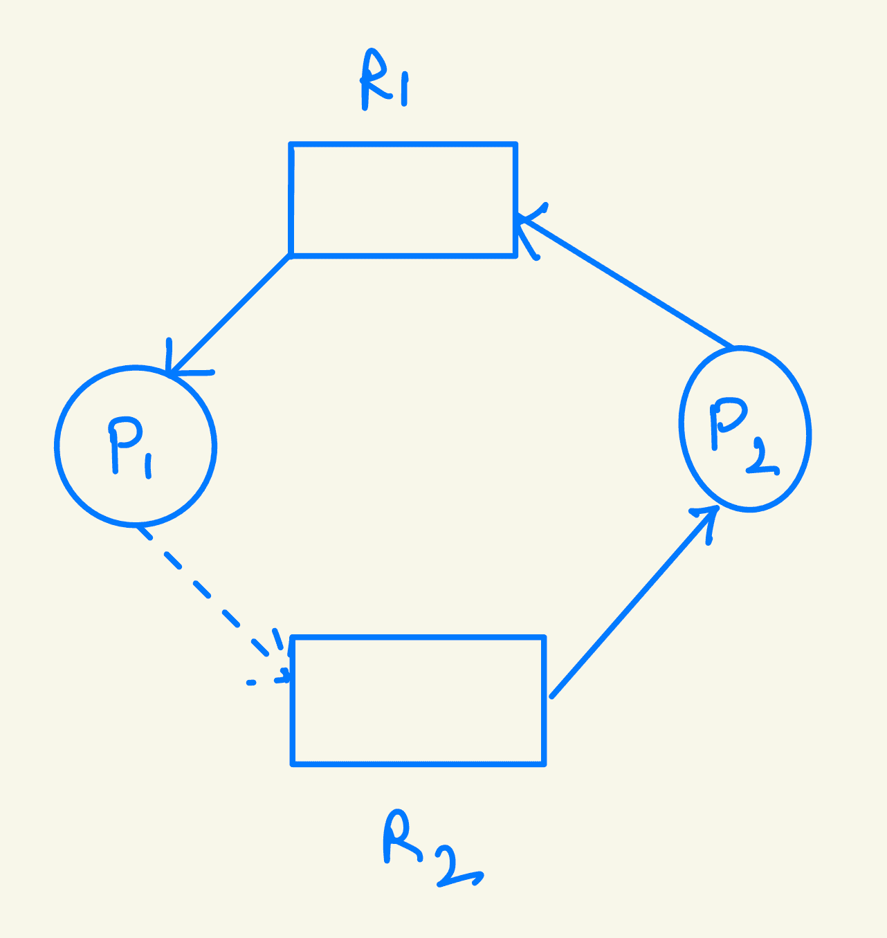 An edge from Pi to Pj indicates that process Pi​ is waiting for Pj​ to release a needed resource.