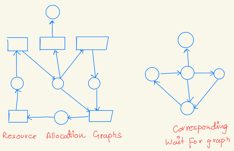 An edge Pi→Pj exists if the resource-allocation graph has edges Pi→Rq​ and Rq→Pj​ for some resource Rq​.